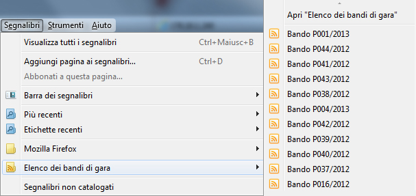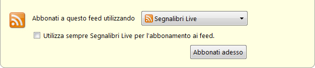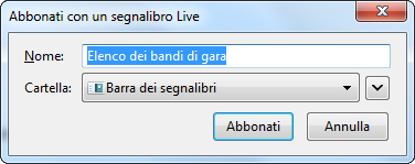 All'intreno della quale è possibile modificare il nome e decidere dove salvare il feed. Per salvare le modifiche fare click su "Subscribe(Sottoscrivere). Per visualizzare i feed fare click su "Bookmarks(Segnalibri):