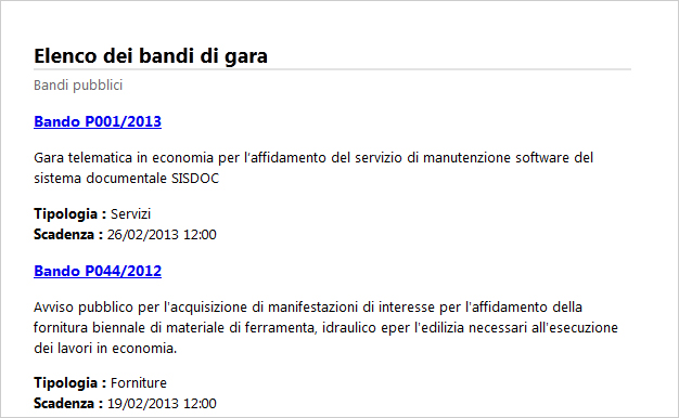 e per aprirne il contenuto fare click sul comando "Apri" relativo ad esempio a "Elenco dei bandi di gara".