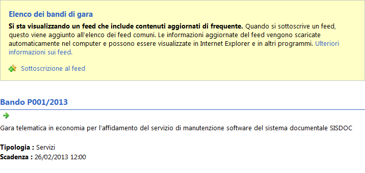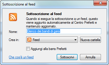 Come si evince dalla schermata è possibile eseguire la sottoscrizione al feed facendo click su "Sottoscrizione al feed".